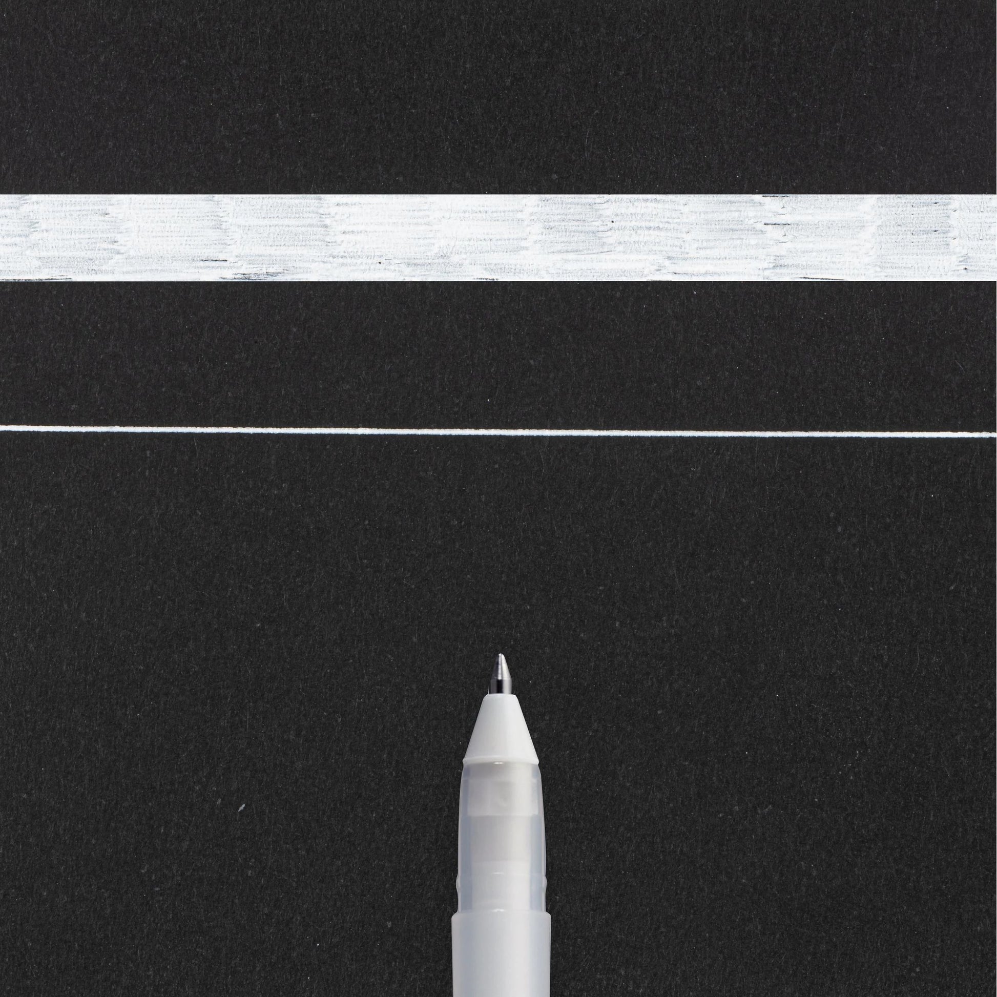 De Gelly Roll-pen Basic Wit is ideaal voor het toevoegen van helder witte lijnen om je kunst naar een ander niveau te tillen met lijnen en unieke accenten. De dekkende witte inkt springt eruit op donker en gekleurd papier en haalt opvallende details in illustraties en strips naar voren. Ideaal voor het handletteren van accenten of het maken van kaarten, gelaagd bovenop kleuren voor gemengde media en voor heldere hoogtepunten in tonale tekeningen. De Sakura Gelly Roll bevat een speciale gelinkt met pigment op waterbasis voor felle, krachtige kleuren die nooit vervagen. Dankzij de unieke gelinkttechnologie is de inktstroom uit de pen altijd constant, zonder dat druk hoeft te worden uitgeoefend.