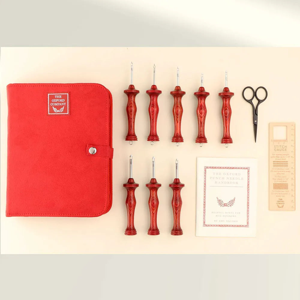De Oxford Signature punchnaalden hebben een prachtig rood houten handvat. Deze complete Oxford Signature punchnaaldenset bestaat uit de volgende onderdelen: