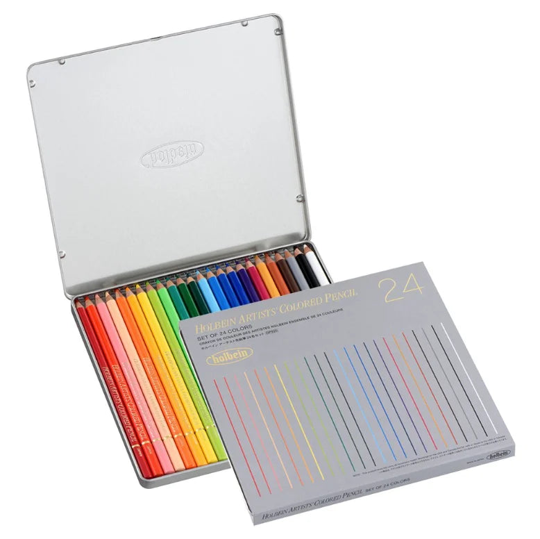 Deze hoogwaardige set bevat 24 professionele kleurpotloden van Holbein, bekend om hun intense pigmentatie, soepele kleurafgifte en uitstekende lichtechtheid. De zachte oliebasis-kern zorgt voor vloeiende lijnen en mooie gelaagdheid, ideaal voor illustratie, ontwerp en kunstwerken die langdurig bewaard blijven. Geschikt voor diverse papiersoorten en goed te combineren met aquarel, gouache en acryl.
