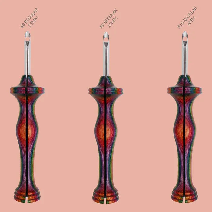 De Oxford Symfonie Wood punchnaalden hebben een prachtig gekleurd houten handvat. De Oxford Symfonie Wood regular punchnaald is verkrijgbaar in verschillende maten. De maten corresponderen met de lengte van de lussen die je maakt tijdens het punchen: